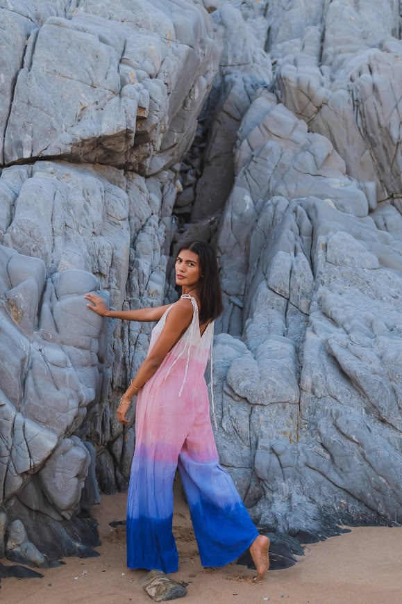 El Jumpsuit Amalia redefine la comodidad con estilo. Su corte amplio y pierna ancha crea un movimiento fluido que envuelve el cuerpo con suavidad, mientras los tirantes ajustables permiten adaptarlo con total libertad. Los bolsos amplios en los costados aportan practicidad sin restar ligereza al diseño.
