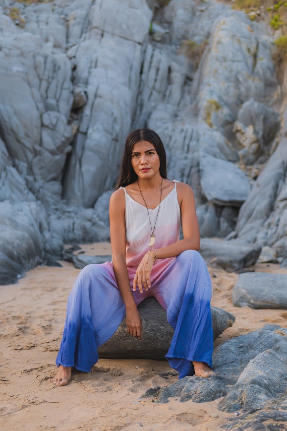 Una de sus virtudes es la versatilidad: es una prenda reversible, con dos escotes distintos — uno profundo y otro discreto — para elegir según el momento o el ánimo. Hecho de algodón mexicano artesanal y teñido con pigmentos naturales, el Amalia acompaña tanto los días de descanso como los instantes más especiales, siempre con un aire libre y natural.